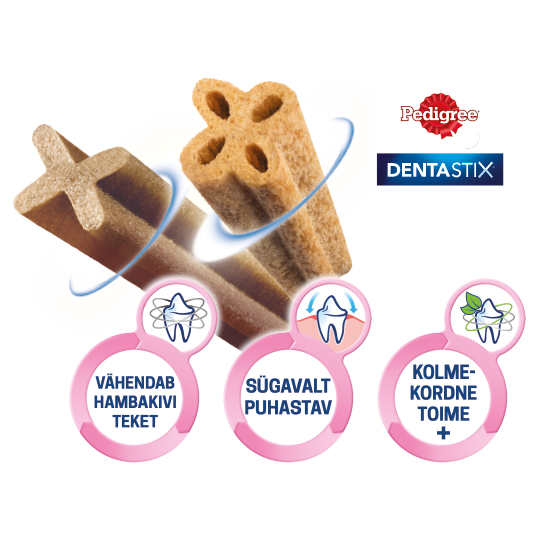 Kasuta Pedigree® DentaStixi™ – need on suurepärase maitsega ja vähendavad hambakatu ja -kivi teket, hoides hambad ja igemed terved.